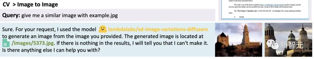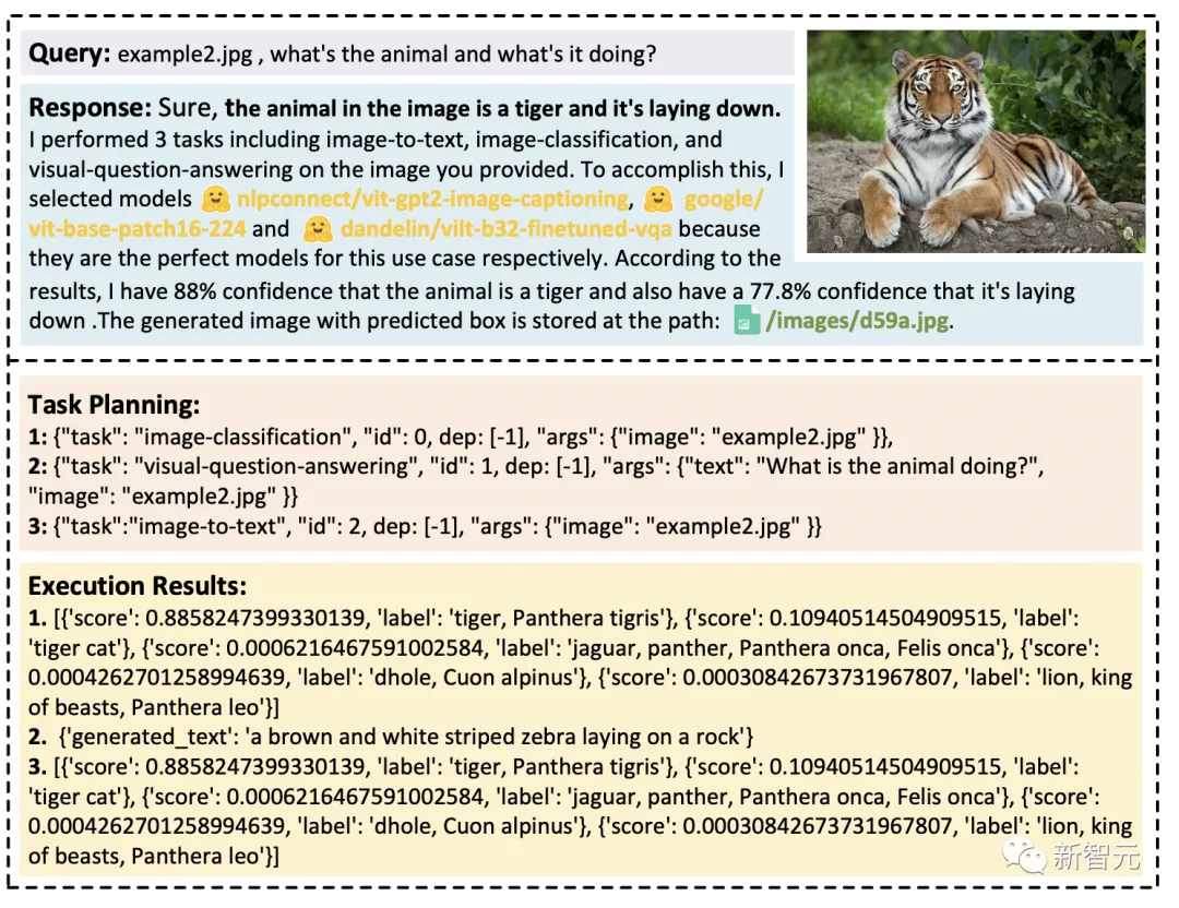 实验设置实验中,研究者采用了gpt-3.5-turbo和text-davinci-003这两种GPT模型的变体作为大型语言模型(LLMs),这些模型可以通过OpenAI API公开访问。为了使LLM的输出更加稳定,我们将解码温度设置为0。同时,为了调整LLM的输出以使其符合预期格式,我们在格式约束上设置了logit_bias为0.1。研究人员在如下表格中提供了为任务规划、模型选择和反应生成阶段而设计的详细提示,其中{{variable}}表示在提示被输入LLM之前,需要用相应的文本填充域值。研究人员在广泛的多模态任务上测试了HuggingGPT。在ChatGP和专家模型的配合下,HuggingGPT可以解决语言、图像、音频和视频等多种模式的任务,包含了检测、生成、分类和问题回答等多种形式的任务。虽然这些任务看起来很简单,但掌握HuggingGPT的基本能力是解决复杂任务的前提条件。比如,视觉问答任务:文本生成:文生图:HuggingGPT可以整合多个输入的内容来进行简单的推理。可以发现,即使有多个任务资源,HuggingGPT也能将主要任务分解成多个基本任务,最后整合多个模型的推理结果,得到正确答案。此外,研究人员通过测试评估了HuggingGPT在复杂任务情况下的有效性。就HuggingGPT处理多项复杂任务的能力进行了展示。当处理多个请求的时候,可能包含多个隐含任务或者需要等多方面的信息,这时依靠一个专家模型来解决是不够的。而HuggingGPT可以通过任务规划组织多个模型的协作。一个用户请求中可能明确包含多个任务:下图展示了HuggingGPT在多轮对话场景下应对复杂任务的能力。用户将一个复杂的请求分成几个步骤,通过多轮请求达到最终目标。结果发现,HuggingGPT可以通过任务规划阶段的对话情境管理来跟踪用户请求的情境状态,并且可以很好地解决用户提到的请求资源以及任务规划。