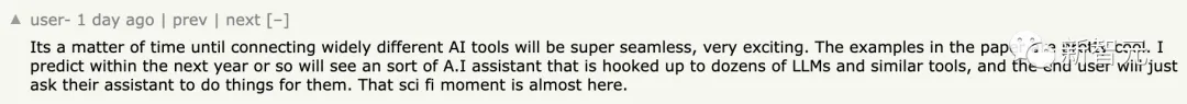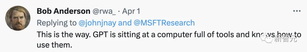JARVIS / HuggingGPT就像此前Meta提出的Toolformer一样,都在充当着连接器的作用。甚至,包括ChatGPT plugins也是如此。网友称,「我强烈怀疑第一个人工通用智能(AGI)的出现将比预期更早。它将依靠「胶水」人工智能,能够智能地将一系列狭义人工智能和实用工具粘合在一起。我获得了访问ChatGPT的Wolfram插件的权限,这使它一夜之间从数学菜鸡变成了数学天才。当然,这只是一个小步骤,但却预示着未来的发展趋势。我预测,在接下来的一年左右,我们将看到一种人工智能助手,它与数十个大型语言模型(LLMs)及类似工具相连,而终端用户只需向其助手发出指令,让其为他们完成任务。这个科幻般的时刻即将到来。还有网友称,这就是未来的研究方法。GPT在一大堆工具面前,知道如何使用它们了。