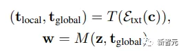 在文本编码分支中,首先使用一个预先训练好的 CLIP 模型和一个学习的注意层 T 来提取文本嵌入,然后将嵌入过程传递给样式映射网络 M,生成与 StyleGAN 类似的样式向量 w