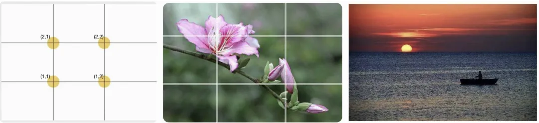 顾名思义就是将摄影构图的技术参数化,并将其应用于3D场景的拍摄中,比如最常见的构图技巧为“井”字构图法,如下所示: