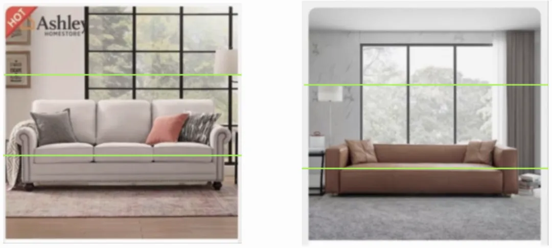 我们通过大量的投放实验发现合理的前背景搭配以及合理的机位选择能对商品CTR带来显著的影响。住宅家具类目的实验表明,更合理的前背景搭配以及有效的运镜CTR差异能够超过15%。
