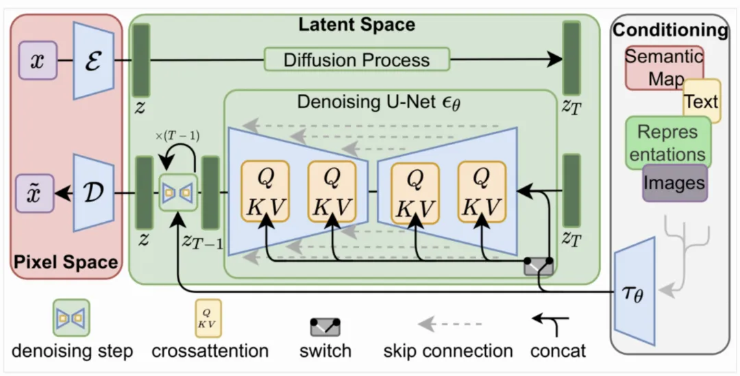 简单场景生成技术核心解决场景内贴图生成问题,根据不同的商品生成与之匹配的场景贴图,并用生成的贴图根据一定的场景构建方式构建出新的场景,从而完成简单3D场景创作。我们采用的技术方案是基于Diffusion Model进行贴图生成,模型结构如下图所示: