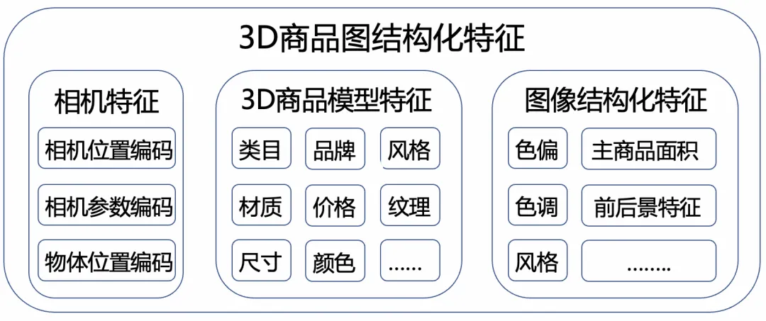 在没有大流量训练的前提下,仅仅从图像层面进行粗粒度特征提取,模型效果远不如汤普森采样。为此,我们对图片的信息进行了细粒度的解构做了大量的特征工程,同时基于逆向运镜技术从图片中解构出了相机参数作为2D图片独有的3D特征,从而将商家拍摄的图片与3D场景下生成的图片在特征维度进行了统一,如下为我们抽取的部分特征: