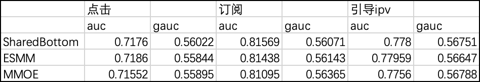 除此shared-bottom网络结构之外,我们还尝试了其他的多任务模型,包括 ESMM[3] 和 MMOE[4] 等,但离线训练并未取得明显提升,因此没有上线。