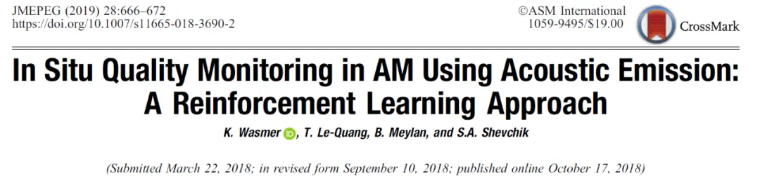3 基于声频发射(Acoustic Emission)的 AM 现场质量监测:一种强化学习方法[7]