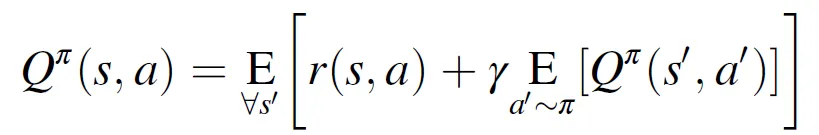 强化学习优化范式的目标是在一个 episode 中获得最大的奖励,这是通过生成一个策略π来实现的。策略π根据 agent 的当前状态选择一个操作,以便最大化未来预期奖励。agent 根据策略π完成动作,给定状态的未来预期收益记为值函数 V^π(s),而在采取特定动作 a 之后,以及随后根据策略π完成动作时,给定状态的未来预期奖励称为动作值函数 Q^π(s,a)。对策略进行迭代优化,以找到使 Q^π(s,a)的值最大化的最优策略π。
