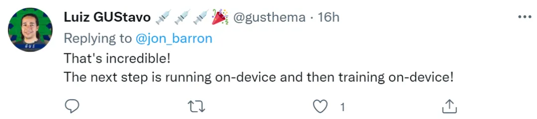 更多的网友认为不可思议,可以预见下一步是在设备上运行,然后在设备上训练!