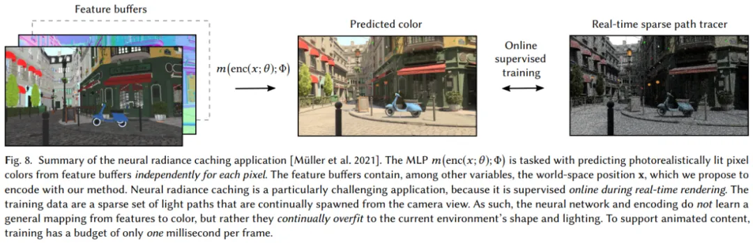 图 8 展示了神经辐射缓存(Neural radiance caching, NRC)应用的流程: