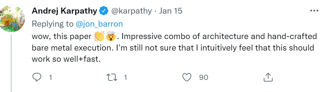 效果如此惊艳,特斯拉 AI 高级总监 Andrej Karpathy 也对这项研究感叹道:「令人印象深刻的架构组合和手工制作的元执行。我仍然不相信这项研究进展的这么好、这么快。」