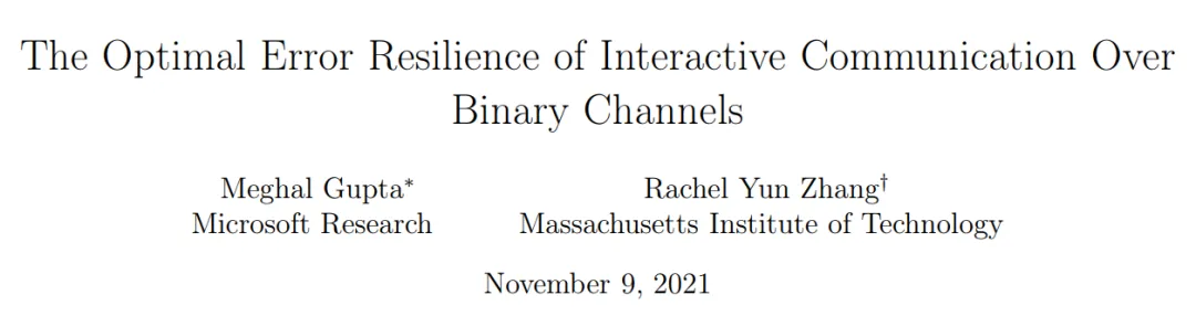 论文 2:The Optimal Error Resilience of Interactive Communication Over Binary Channels