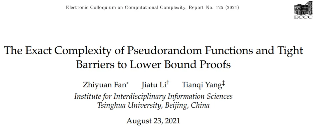 论文 1:The Exact Complexity of Pseudorandom Functions and Tight Barriers to Lower Bound Proofs