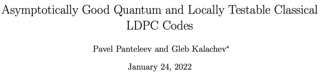 论文 2:Asymptotically Good Quantum and Locally Testable Classical LDPC Codes