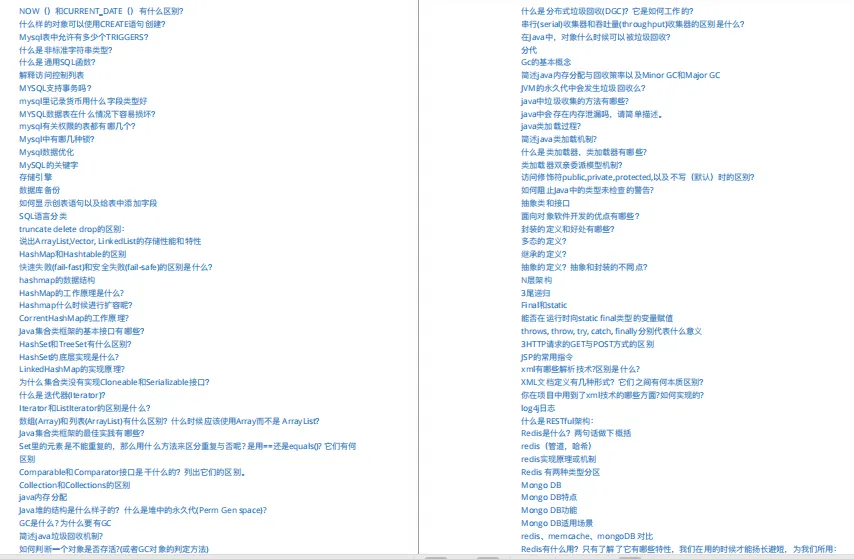 前段时间面试了不少互联网企业,收集到的面试题有:Redis、多线程、JVM、Mongo DB、HTTP、HashMap、Spring等等,对应面试点也总结了相应的一份面试答案,感兴趣的朋友请自取!