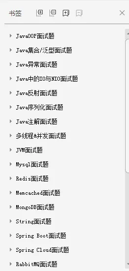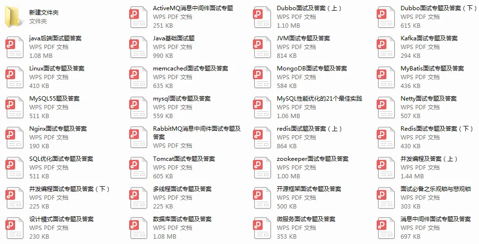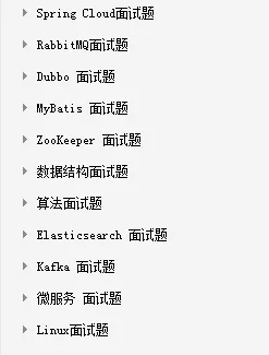 上千道Java、Spring、JVM、集合、JVM、Mybatis、MySQL、DB、GC、Spring全家桶、Dubbo、数据结构、算法、Kafka、微服务等