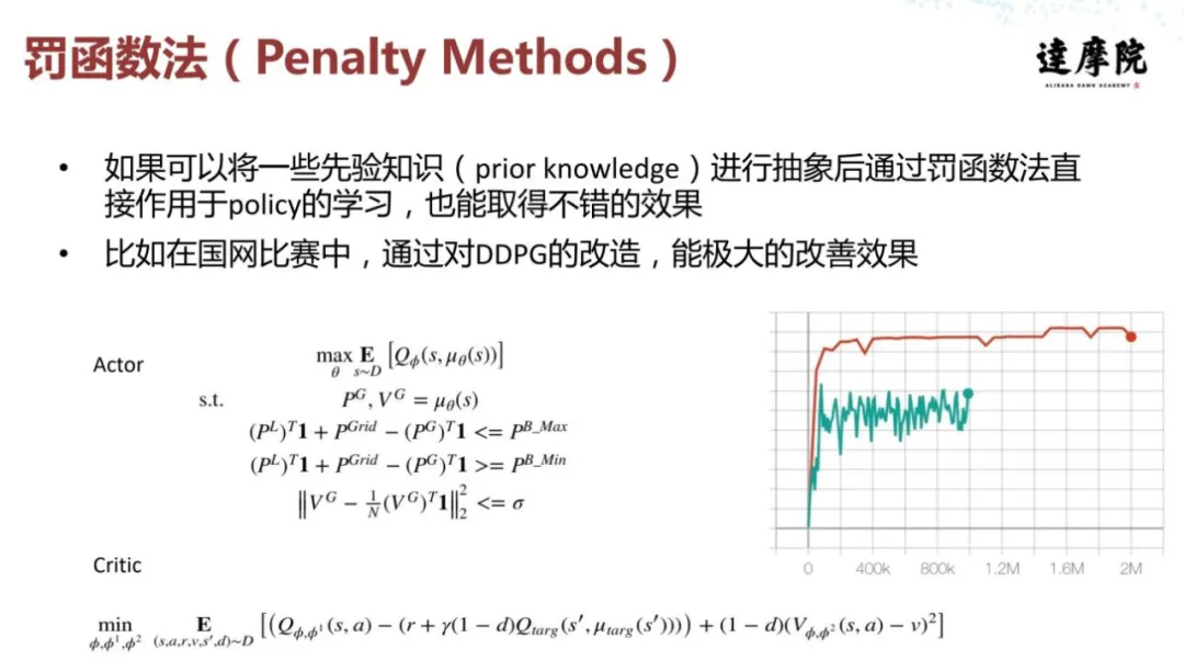 我们当时在国网比赛中对一个经典的 DDPG 进行了改造,可以看到下图右红色曲线的明显改进,无论是收敛速度还是获得收益,它的效果都会更好一些。当然需要你对策略做一些精巧的设计。