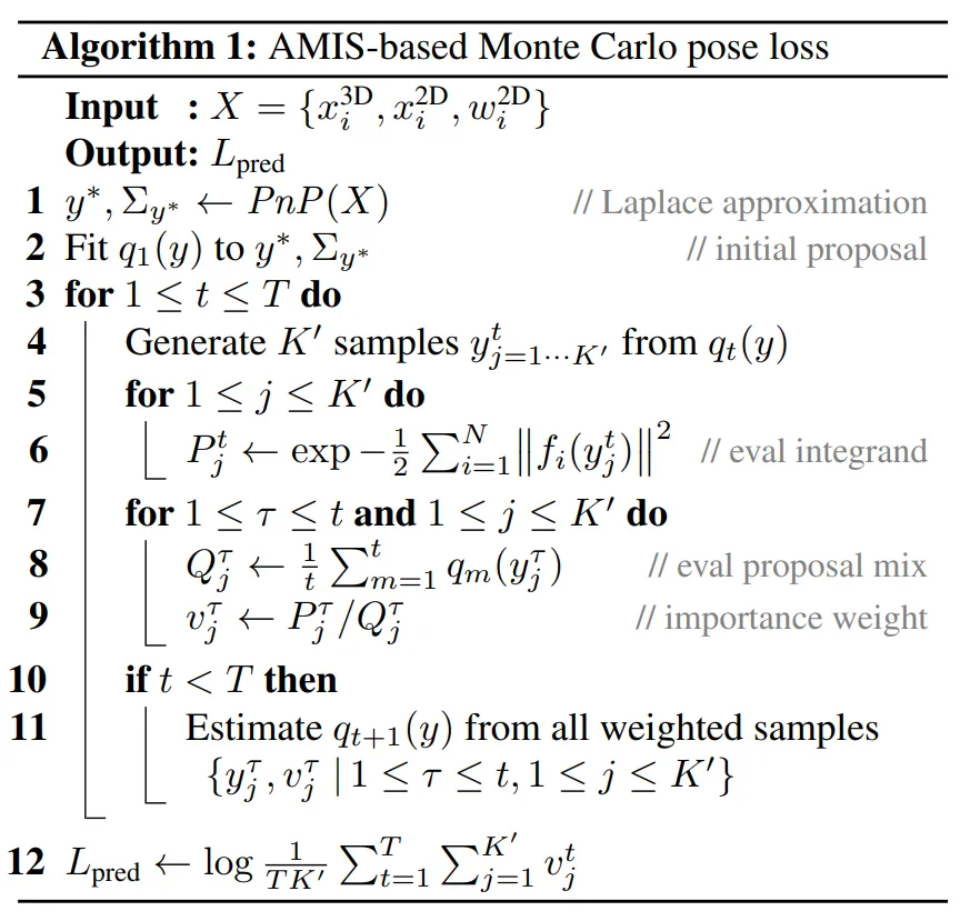 算法 1:基于 AMIS 的蒙特卡洛姿态损失。