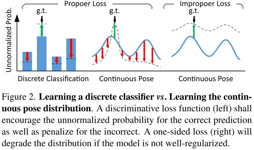 学习离散分类器 vs 学习连续姿态分布。