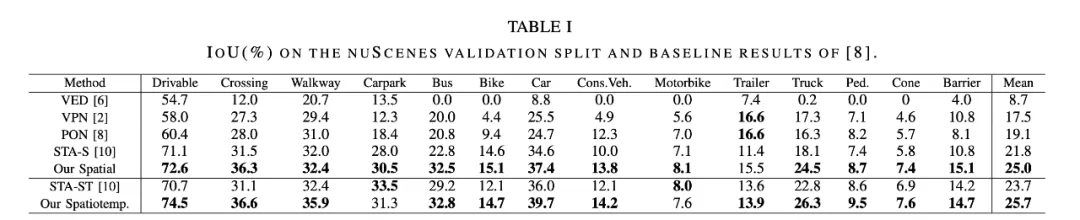 研究者将本文方法与一些 SOTA 方法进行了比较。如下表 1 所示,空间模型的表现优于目前压缩的 SOTA 方法 STA-S ,平均相对改善 15% 。在更小的动态类上,改善更加显著,公共汽车、卡车、拖车和障碍物的检测准确度都增加了相对 35-45% 。