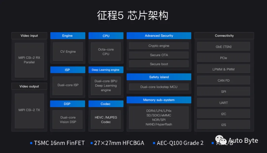 不过,2021年2月,征程5还是在台积电顺利流片,并在5月一次性流片成功,在15小时内完成了全部的核心功能测试。这意味着,征程5或将是国内首款实现前装量产的百TOPS级大算力AI芯片。