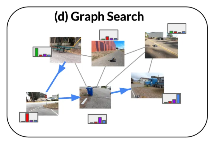 4、利用 VLM 的概率分布和 VNM 推断的图连接性,采用一种新颖的搜索算法,在环境中检索出一个最优指令路径,该指令路径(i)满足原始指令,(ii)是图中能实现目标的最短的路径。