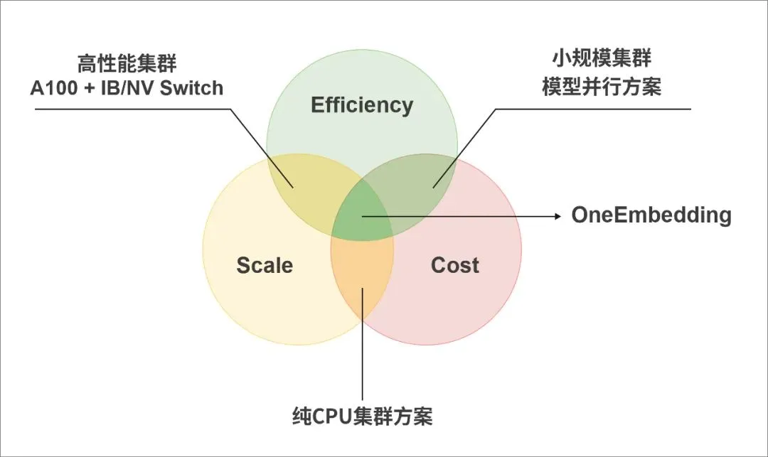 大规模推荐系统的核心问题就是,如何高效经济地支持大规模 Embedding 的查询和更新。权衡规模、成本和效率,出现了如下三种常见的解决方案。