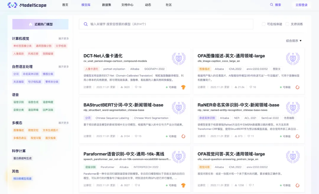 官网地址:http://www.modelscope.cn/