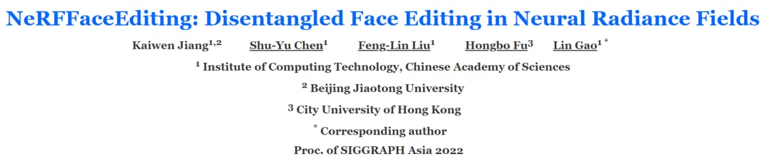 NeRFFaceEditing 由中科院计算所和香港城市大学的研究人员合作完成,相关技术论文在计算机图形学顶级会议 ACM SIGGRAPH Asia 2022 上发表。