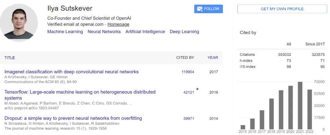 Ilya Sutskever 为该论文的作者之一,也是 Hinton 的博士生,为 OpenAI 联合创始人兼首席科学家。此前,他还在斯坦福大学 Andrew Ng 的团队做博士后。