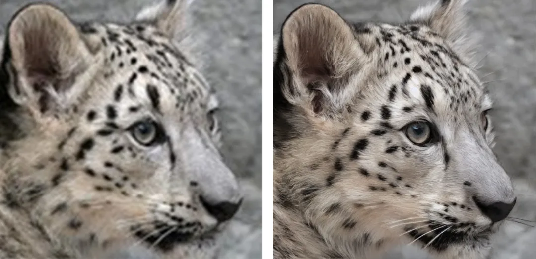 最后,Stable Diffusion 2.0 还引入了一个新的 text-guided 修复模型,用户可以非常智能、快递的切换图像部分内容,如下图中豹子的嘴巴和鼻子是不变的,其他部分可以随意改变。