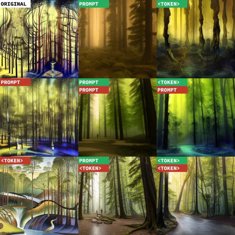 虽然充斥着大量超现实主义赛博朋克隐喻,这依然是一片森林。从理论上来说,要改进上述图像,一个很流行的技巧是纳入更抽象的不良图像概念,如模糊和马赛克。但是,这些 negative prompt 是否比其他“成分”(如 4k hd)更好呢?negative prompt 如何与那些 positive promt addition 相互作用?我们来进一步实际测试一下。negative prompt 和 positive prompt 会碰撞出什么火花?这里插句题外话。有种名为 textual inversion 的技术(可供文本编码器学习特定对象或风格,可以在 prompt 中轻松调用)在 Stable Diffusion 2.0 中同样适用,尽管由于文本编码器不同(更大,嵌入是 1024D 而非 768D),每个 textual inversion 嵌入都必须重新训练,但在其他方面表现相同。SD1.X 中的一种常见风格是 “Midjourney” 风格(见下图),有种过度幻想的美学意味。我还训练了 <midjourney> token 的新版本(参见:https://huggingface.co/minimaxir/midjourney_sd_2_0)。