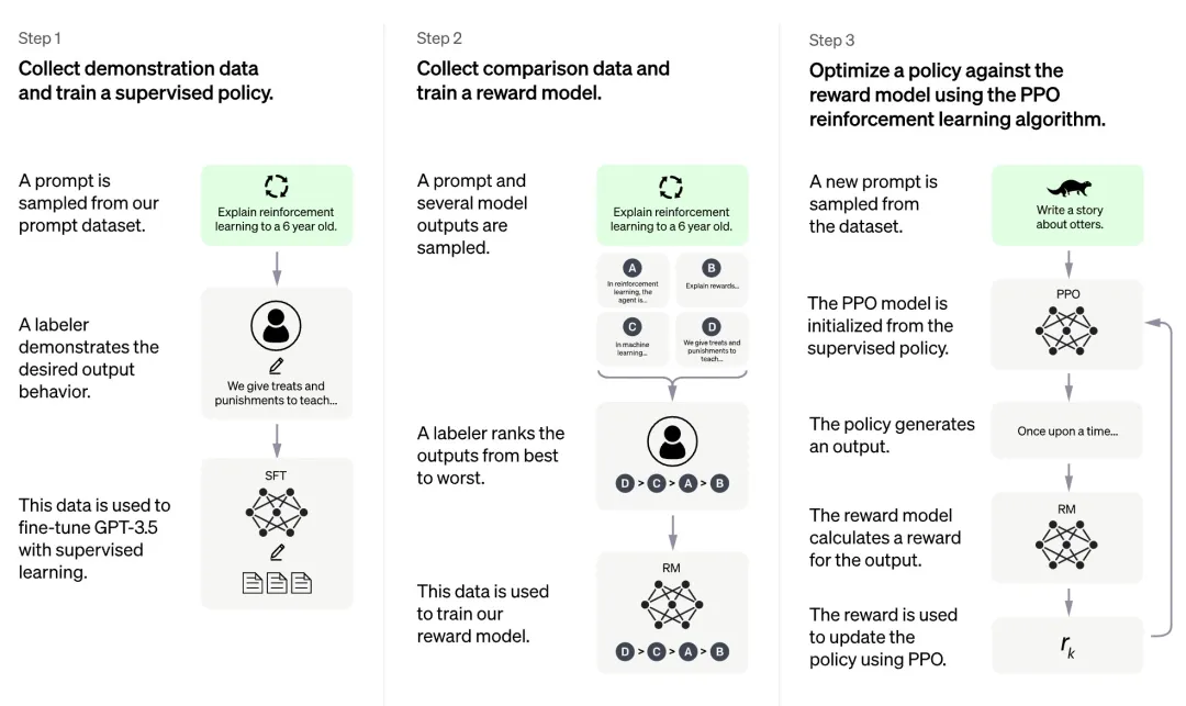 根据 OpenAI 目前公开的信息,ChatGPT 的训练过程共分为三个阶段: