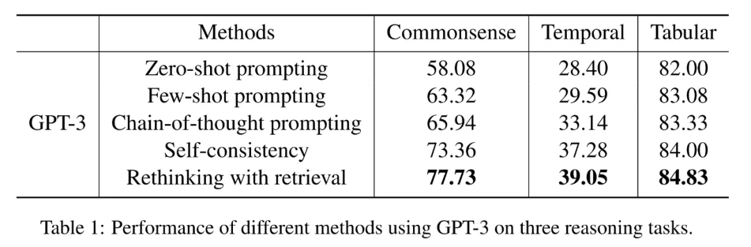 结果。如表 1 所示,本文提出的方法 RR,在所有三个推理任务上始终优于所有基准,而无需额外的训练或微调。这些结果凸显出了 RR 在利用外部知识提高 LLM 表现方面的有效性。