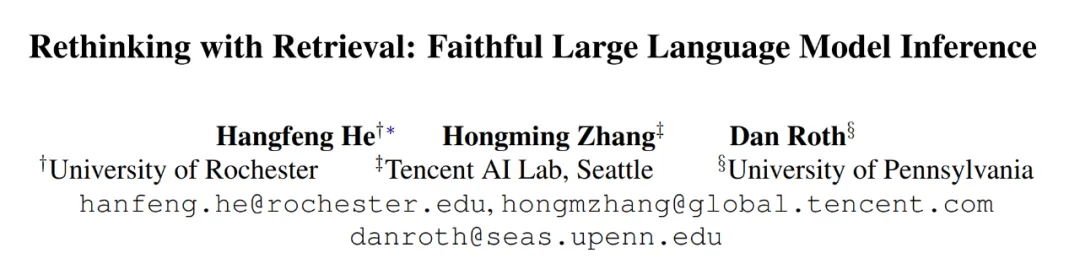 基于此,来自罗彻斯特大学、腾讯 AI Lab 和宾夕法尼亚大学的研究者联合提出了一种称为 Rethinking with Retrieval (RR) 的后处理方法,以在 LLM 中利用外部知识。