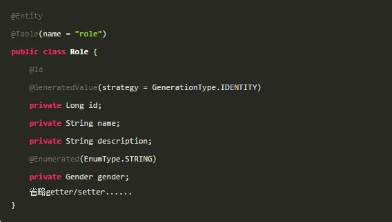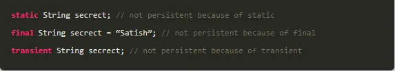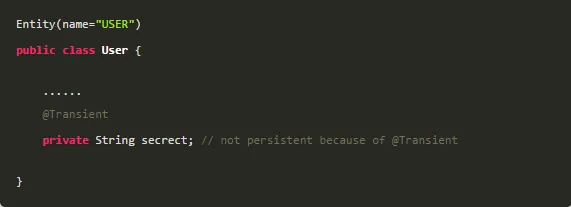 如果我们想让secrect 这个字段不被持久化,可以使用 @Transient关键字声明。