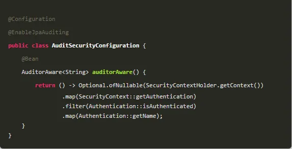 我们对应的审计功能对应地配置类可能是下面这样的(Spring Security 项目):