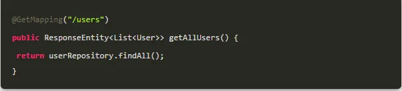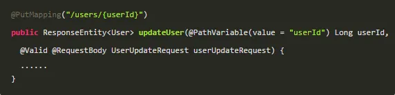 @PostMapping("/users") public ResponseEntity<User> createUser(@Valid @RequestBody UserCreateRequest userCreateRequest) { return userRespository.save(user); }