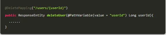 @DeleteMapping("/users/{userId}")等价于@RequestMapping(value="/users/{userId}",method=RequestMethod.DELETE)