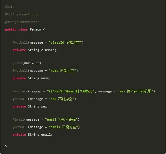 校验的时候我们实际用的是 Hibernate Validator 框架。Hibernate Validator 是 Hibernate 团队最初的数据校验框架,Hibernate Validator 4.x 是 Bean Validation 1.0(JSR 303)的参考实现,Hibernate Validator 5.x 是 Bean Validation 1.1(JSR 349)的参考实现,目前最新版的 Hibernate Validator 6.x 是 Bean Validation 2.0(JSR 380)的参考实现。