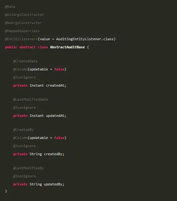 只要继承了 AbstractAuditBase的类都会默认加上下面四个字段。