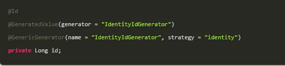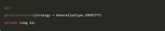 @Id @GeneratedValue(strategy = GenerationType.IDENTITY) private Long id;