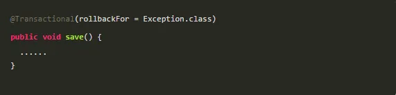 我们知道 Exception 分为运行时异常 RuntimeException 和非运行时异常。在@Transactional注解中如果不配置rollbackFor属性,那么事物只会在遇到RuntimeException的时候才会回滚,加上rollbackFor=Exception.class,可以让事物在遇到非运行时异常时也回滚。