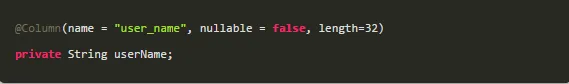 设置属性 userName 对应的数据库字段名为 user_name,长度为 32,非空