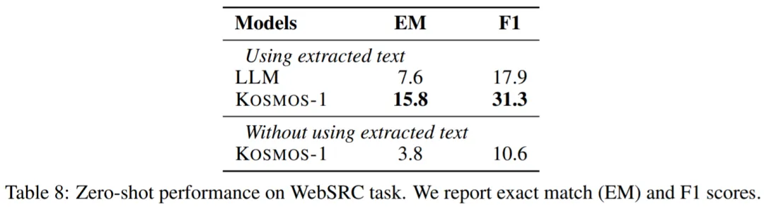 网页问答。网页问答旨在从网页中找到问题的答案。它要求模型既能理解文本的语义,又能理解文本的结构。结果如下: