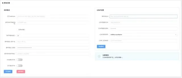 设置消息推送相关信息 包括钉钉机器人/email,设置LDAP相关信息,全局配置信息,全局配置开关