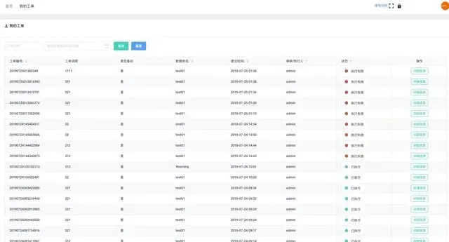 2、管理员收到消息后在审核工单页面审核该工单请求并执行/驳回 对应工单
