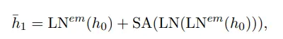 其中 h_0 是初始 token 嵌入,LN^em 是嵌入层归一化的新组件。请注意,第二项包括两个连续的层归一化。