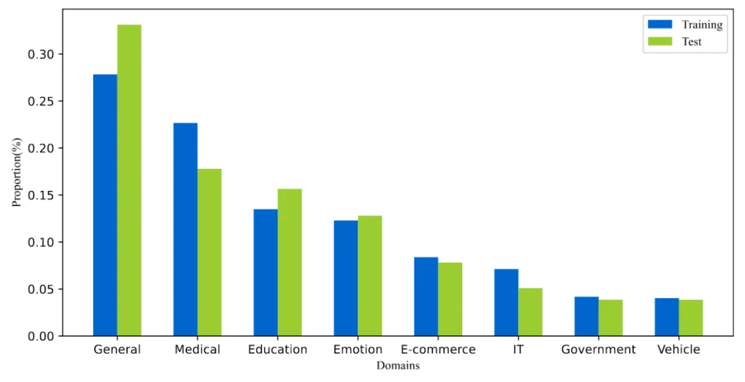T2Ranking 由超过 30 万的真实查询和 200 万的互联网段落构成。其中,训练集包含约 25 万个查询词,测试集包含约 5 万个查询词。查询词长度最长为 40 个字符,平均长度在 11 个字符左右。同时,数据集中的查询词覆盖了多个领域,包括医药、教育、电商等,我们也计算了查询词的多样性分数(ILS),与已有数据集相比,我们的查询多样性更高。采样的 230 多万个段落来源于 175 万个文档,平均每个文档被分割为了 1.3 个段落。在训练集中,平均每个查询词有 6.25 个段落被人工标注,而在测试集中,平均每个查询词有 15.75 个段落被人工标注。