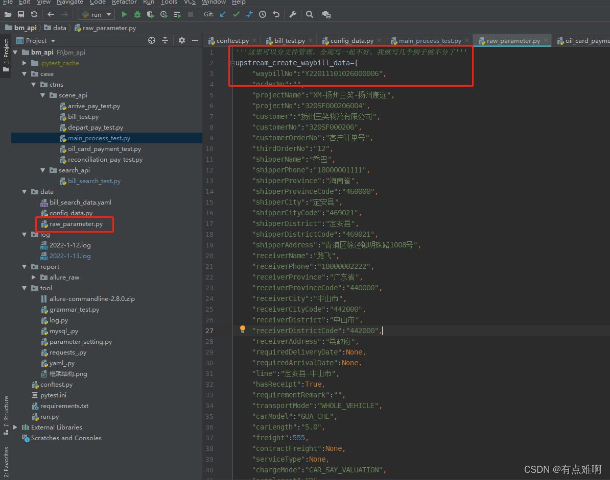 upstream_create_waybill_data 这个是接口原始参数,我存放在data文件下
