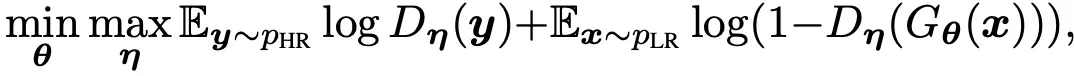 模型可分为生成和鉴别两部分。其中,生成器Gθ由两部分组成:条件网络和SR网络。条件网络将分割概率图作为输入,然后由四个卷积层处理。它生成所有SFT层共享的中间条件。为了避免一个图像中不同分类区域的干扰,通过对所有卷积层使用1×1的核来限制条件网络的感受野。SR网络由16个残差块构建,具有所提出的SFT层,其以共享条件作为输入并学习(γ,β)以通过应用仿射变换来调制特征图。引入Skip connection用于简化深度CNN的训练。通过使用最近邻上采样后跟一个卷积层来上采样特征。上采样操作在网络的后半部分中执行,因此大多数计算在LR空间中完成。