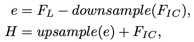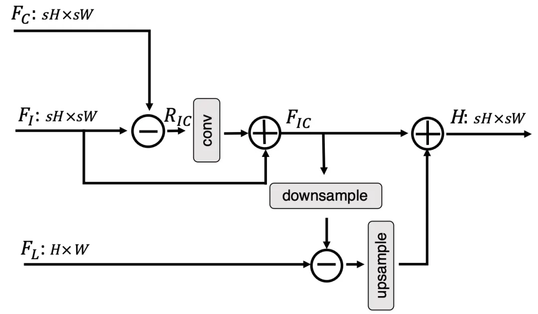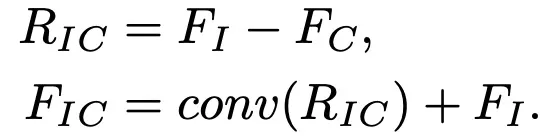 为了让网络集中于信息量更大的特征,首先计算IS-NL F_I和CS-NL F_C分支的两个特征之间的残差 R_单层卷积后,将这些特征加回F_I中,得到F_IC: